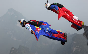 張家界: 身著全套約10公斤的特制衣服和裝備,從飛機(jī)、熱氣球、高樓大廈,特別是懸崖絕壁等高處一躍而下,運(yùn)用肢體動(dòng)作掌控滑翔方向,貼著巖壁像蝙蝠俠一樣,以每小時(shí)200公里以上的速度飛行,夠不夠刺激?這就是被稱為人類最瘋狂的極限運(yùn)動(dòng)——翼裝飛行...