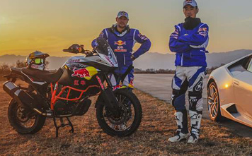 北京:4月8日在八達(dá)嶺長城腳下的延慶機(jī)場,一場備受關(guān)注的兩缸后驅(qū)“山野之王”挑戰(zhàn)V10四驅(qū)“公路猛獸”的跨界對抗如期舉行,紅牛KTM星之隊(duì)車手趙宏義駕駛KTM越野摩托挑戰(zhàn)蘭博基尼Huracan超級跑車,挑戰(zhàn)項(xiàng)目為0-400米的直線競速賽。...