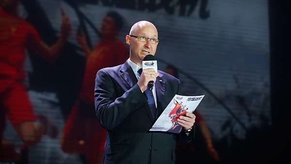 發(fā)布會上,陶菲克與傅海峰上臺互動
