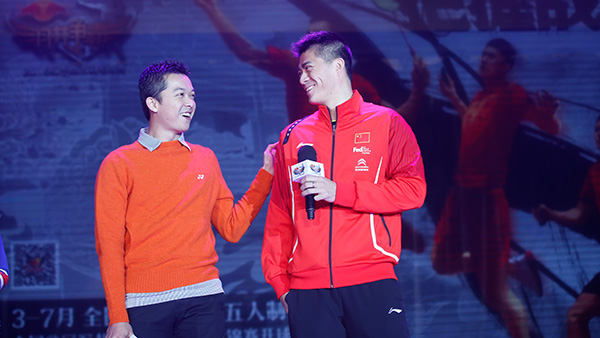 發(fā)布會上,由諶龍、傅海峰、張楠、王適嫻、王儀涵五位世界冠軍聯(lián)袂主演的2015“羽林爭霸”賽事宣傳片令人耳目一新,這部視覺大片將快節(jié)奏的生活場景和緊張激烈的比賽場面剪輯在一起,詮釋了賽事主題“把握戰(zhàn)機”,其中用電腦特效制作的羽毛球場如同電影《星際穿越》中的“五維空間”,極具視覺沖擊力。