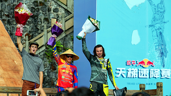 果不其然,盡管有11位選手信心滿滿要去挑戰(zhàn)去年衛(wèi)冕冠軍加拿大騎手加勒特•比特創(chuàng)造的全程29.940秒成績的紀錄,原本計劃在7月17日中午進行的競速賽大決戰(zhàn)及直播,因為張家界天門山一場突如其來的大雨被迫停止,考慮到安全,組委會決定采用排位賽中選手的成績作為今年競速賽最終成績。來自巴西的騎手貝爾納多·克魯茲最終以15.164秒最快的速度獲得冠軍,美國騎手里德·伯格斯、加拿大騎手米奇·初比分別以15.600秒和16.287秒分獲亞軍和季軍。巔峰對決只差幾秒,可謂競爭激烈。