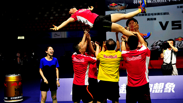 扣殺壓線!隨后黃莉娜將球拍高高扔向空中,自己躺倒在地、雙手指天、對空長嘯……她的隊友們也終于結(jié)束了焦急的等待,沖進(jìn)場地,興奮地拍打著黃莉娜,慶祝他們贏下2016紅牛“羽林爭霸”城市羽毛球賽的全國總冠軍。