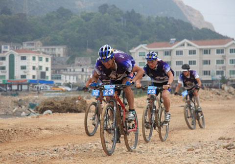 16日的收官之戰(zhàn),大部隊從洞口縣的新城廣場出發(fā),一路騎行32公里后抵達正岙。比賽的初始階段多為平坦的公路,身著31號號碼衫的紅牛戶外隊理查德和艾麗娜夫婦一直穩(wěn)穩(wěn)處于第一集團前列;而紅牛戶外2隊的楊家根和排祖拉也一直在第一集團的中后部暗自發(fā)力。山地路段,是兩支隊伍的分水嶺——為盡力追回前三天比賽中與第一名近20分鐘的差距,理查德和艾麗娜突然發(fā)力,將大部隊甩在身后,當騎行在風景秀美的三盤大橋獨領風騷時,理查德興奮地雙手撒把,振臂高呼;而脫離領騎集團的紅牛二隊,路上的風沙無疑讓本就感冒的楊家根呼吸更加困難。