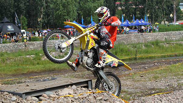 紅牛2015泥石挑戰(zhàn)賽決賽7月26日在北京懷柔區(qū)銳勢越野運動公園舉辦,這是紅牛贊助的又一重量級越野賽事,通過三大項目的角逐,最終河南濮陽騎手蘇善令以1分31秒單道成績奪得兩輪越野摩托技巧障礙賽冠軍。